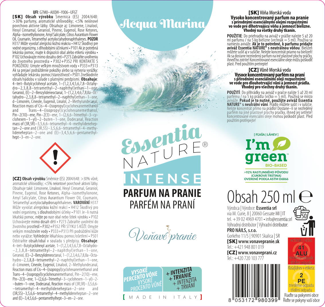 Koncentrovaný olejový parfém na praní Intense - ACQUA MARINA