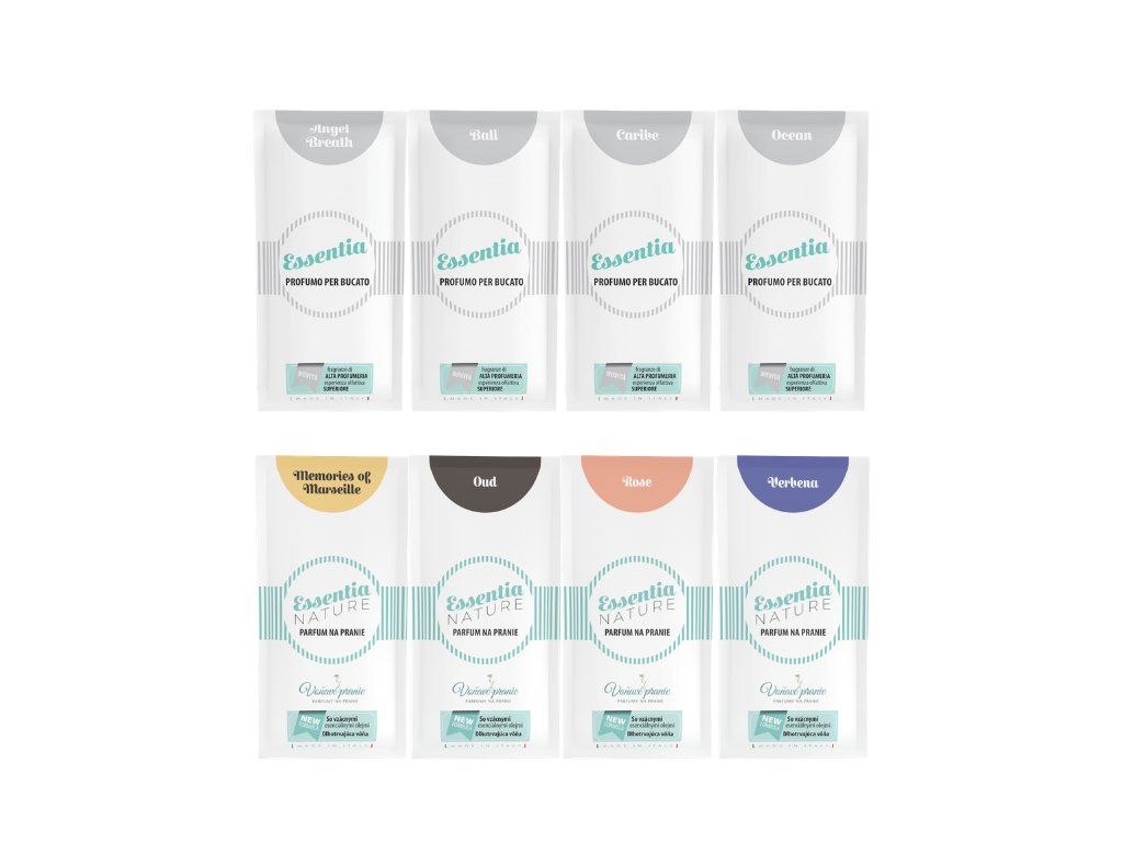 Zkušební sada vzorků olejových parfémů na praní Essentia - 8 x 20 ml.